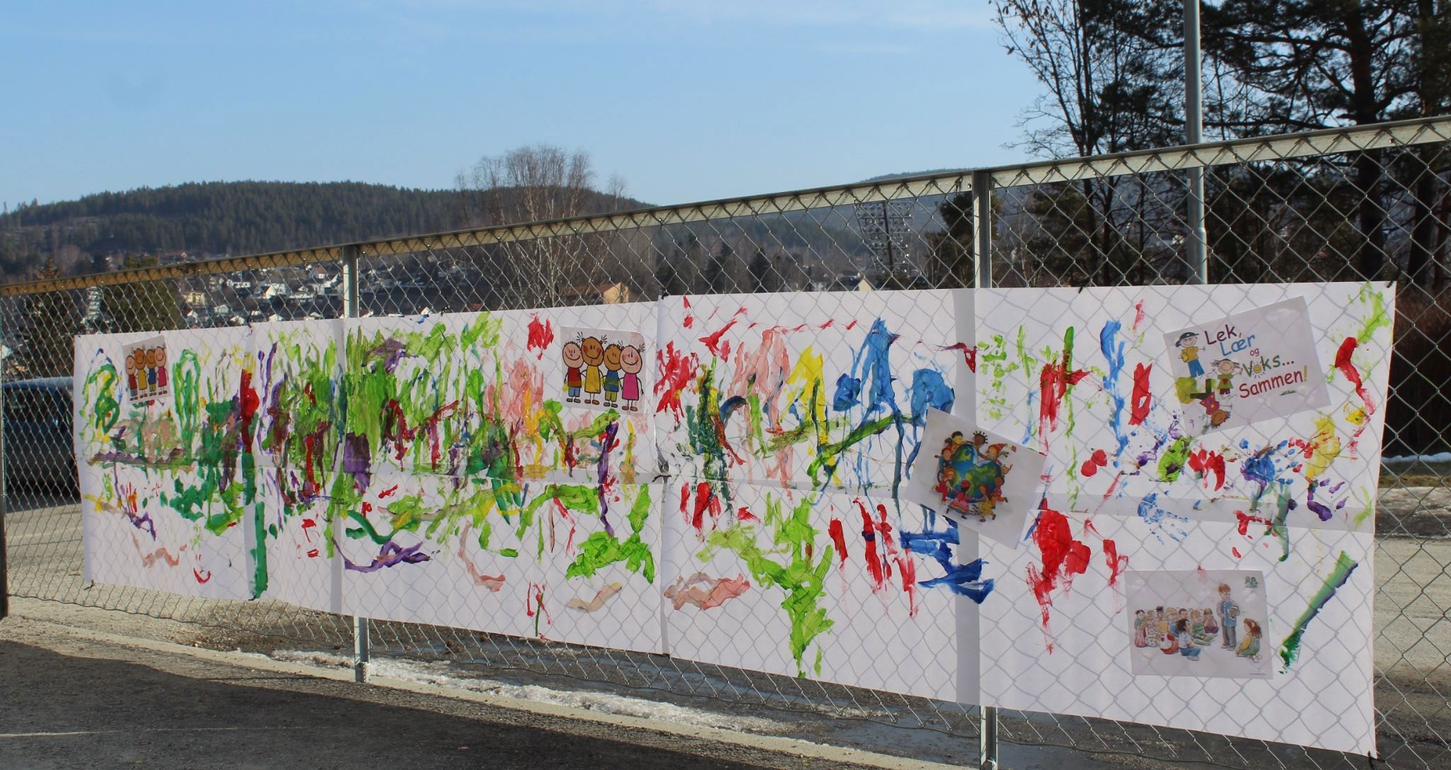 Hos oss i Tinnesmoen barnehage har vi markert dagen med blant annet et felles kunstprosjekt mellom to av avdelingene. For mange av disse barna (alder 2-3 år) var det en ny opplevelse å male utendørs. Lerretet var stort så det ga rom for at flere av barna kunne male sammen og samtidig. Dette ga barna en følelse av felleskap, tilhørighet og en felles skaperopplevelse. Det ble observert mange smil, og barna koste seg veldig med aktiviteten.